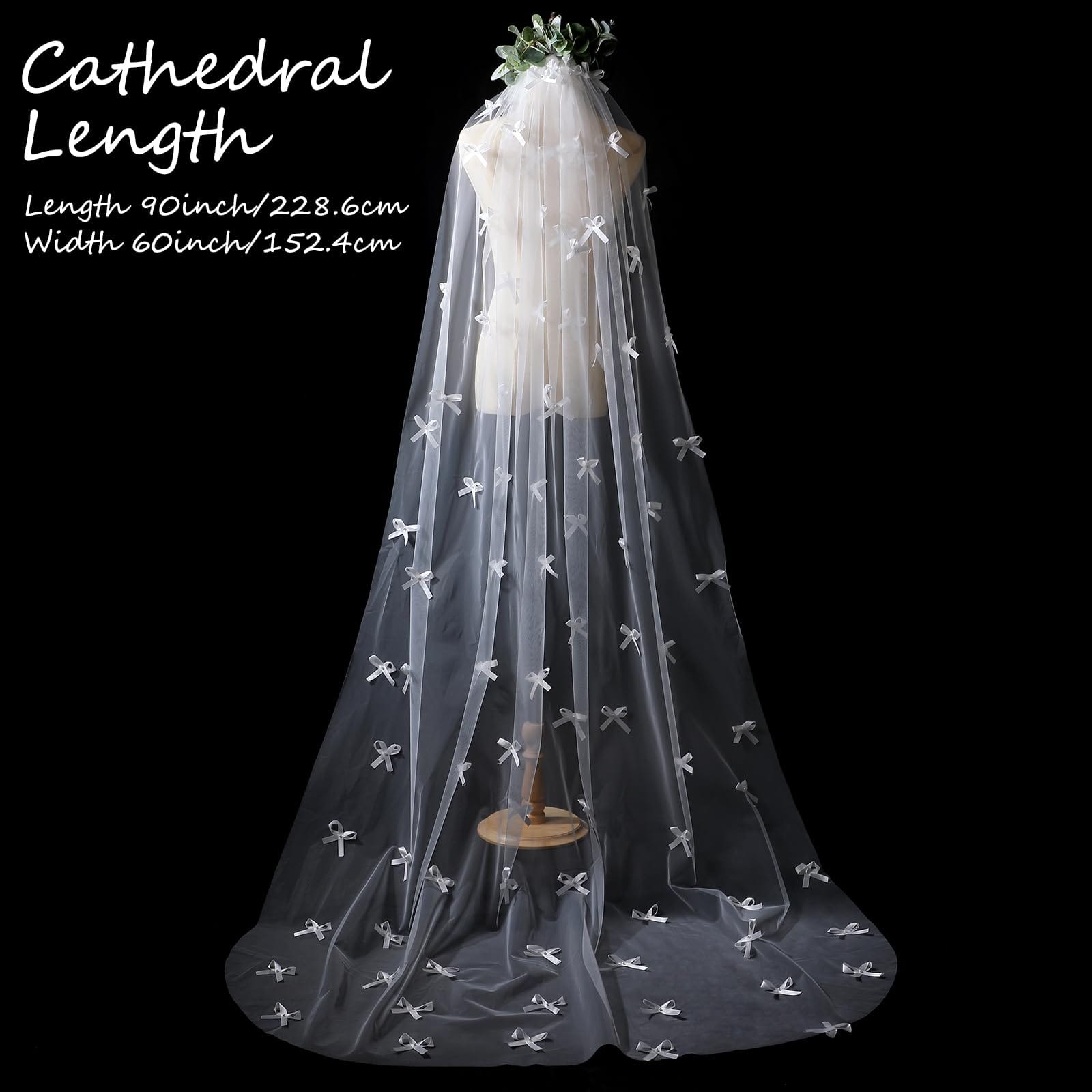 - Elegant Size and Style: the cathedral bridal tulle veil measures 90 x 60 inches/ 228.6 x 152.4 cm; With this substantial size, that gives it an elegant and dignified look, providing the nice touch to complement the bridal dress; The cathedral bridal tulle veils style enhances the whole ceremonial atmosphere