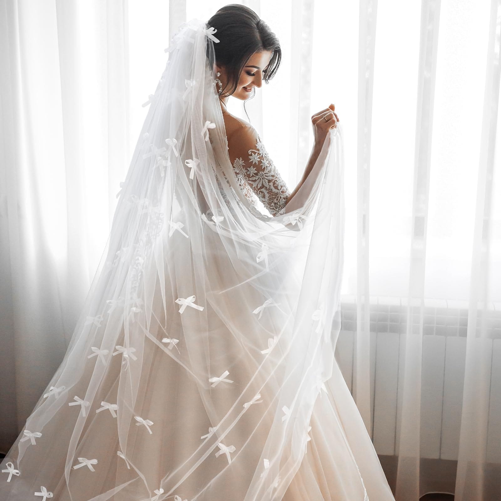 - Cute Coquettish Design: our wedding veil features a charming and flirtatious satin bow design that brings out a sense of playfulness while staying classy; This cute, coquettish element encapsulates a sense of fashion and femininity to the bride