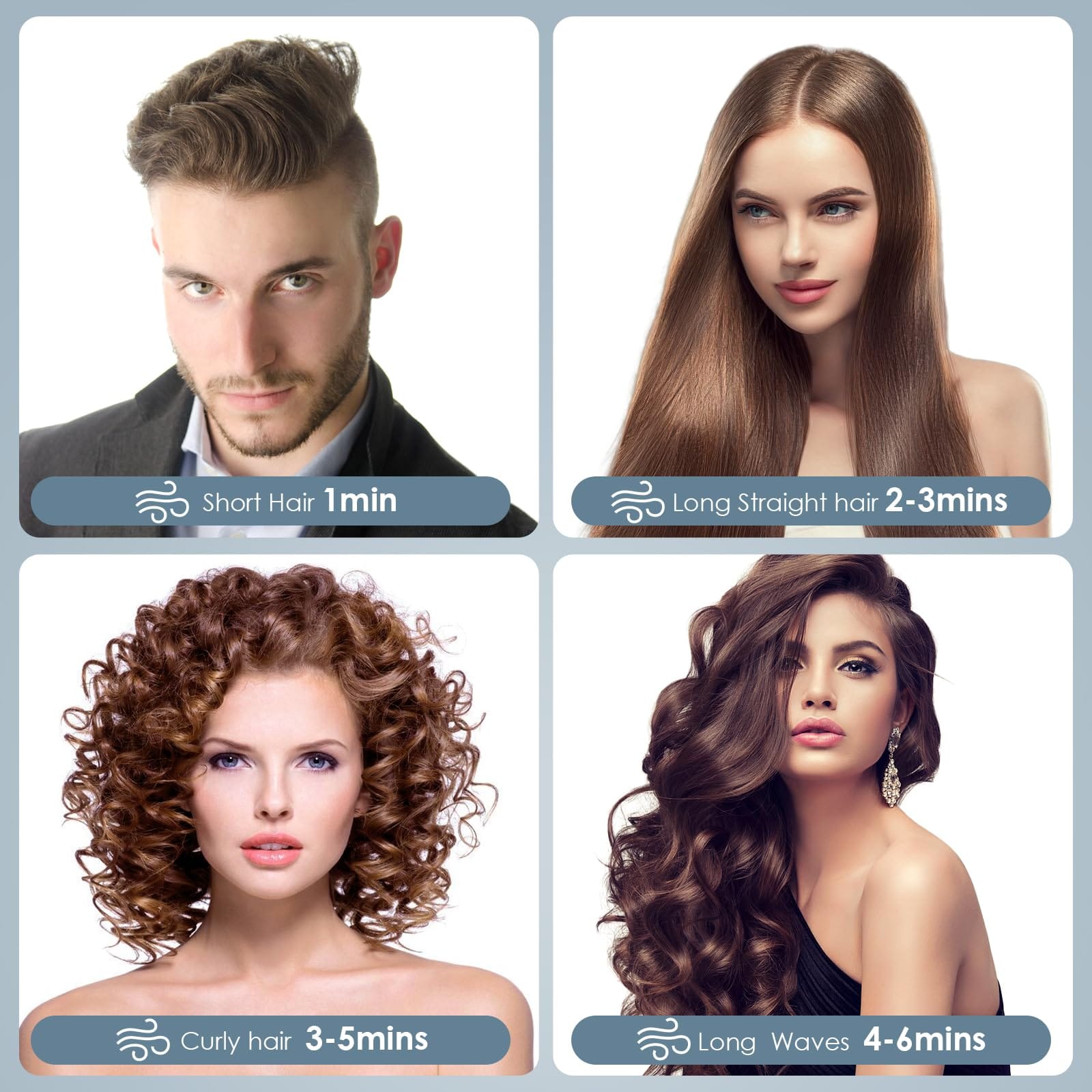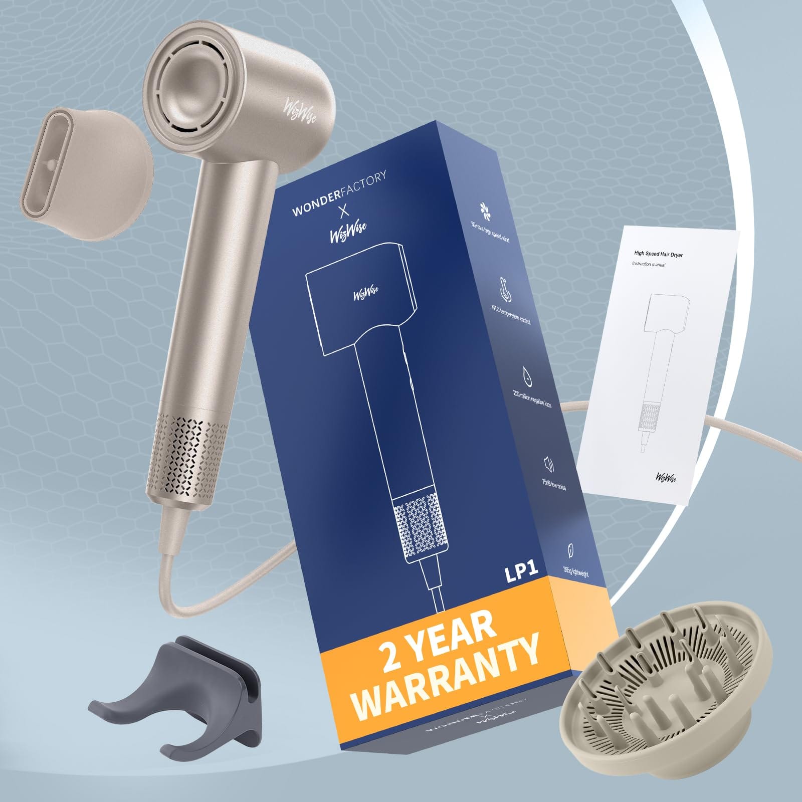 - The Smoother Technology:The WizWise hair dryer adjusts the air temperature over 40 times per second using an NTC temperature sensor, continuously monitoring the temperature of the heating wire in real-time to ensure that the output temperature at the nozzle remains constant within the preset range. It releases one billion negative ions to neutralize static electricity, making the hair softer.