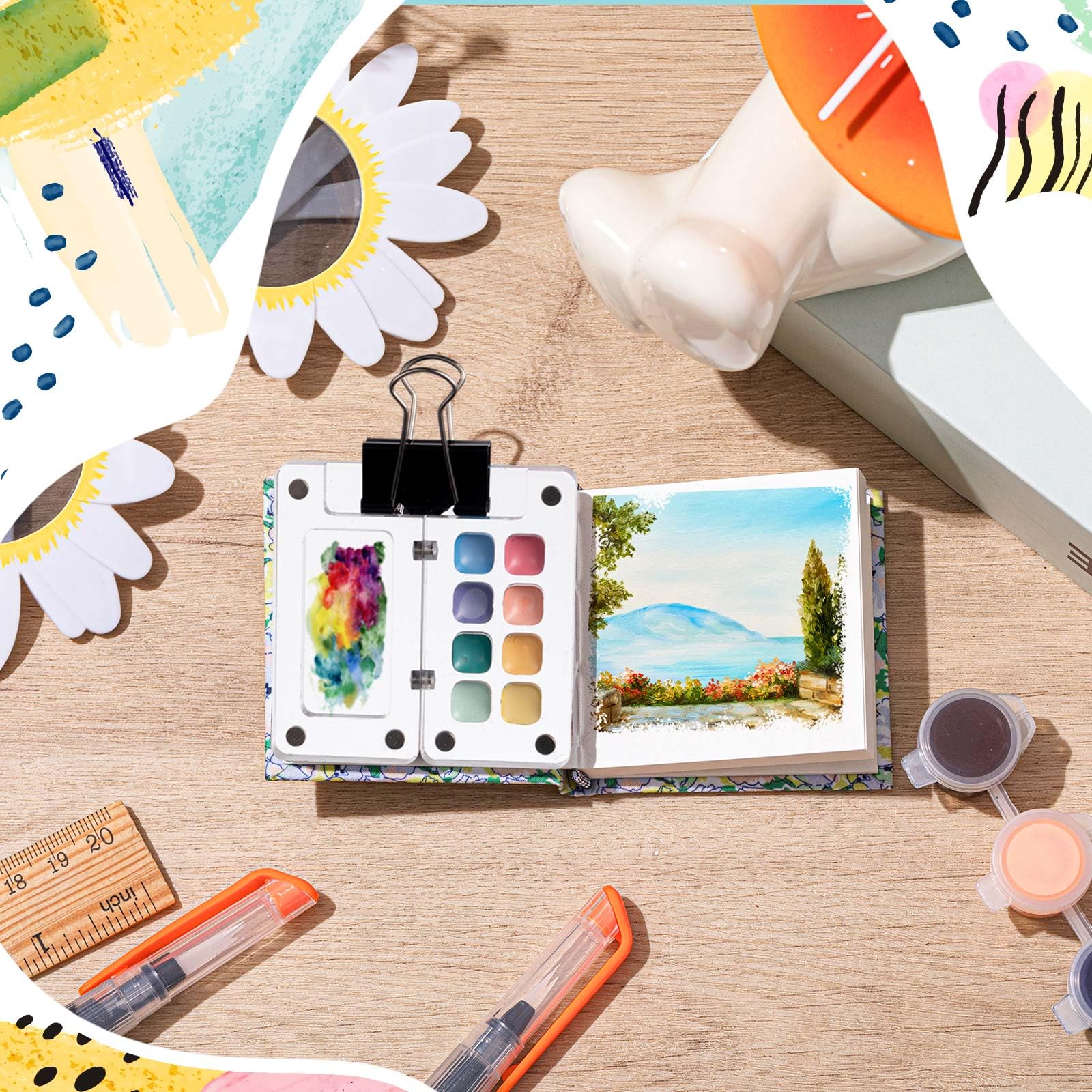 - Complete Package for Every Artist: our package includes 1 acrylic 8 grid paint box, 1 watercolor paper pad sketchbook, 6 artist paint brushes, and 4 binder clips of size 0.98 inch; This complete set promises to meet all the needs of beginners as well as professional artists