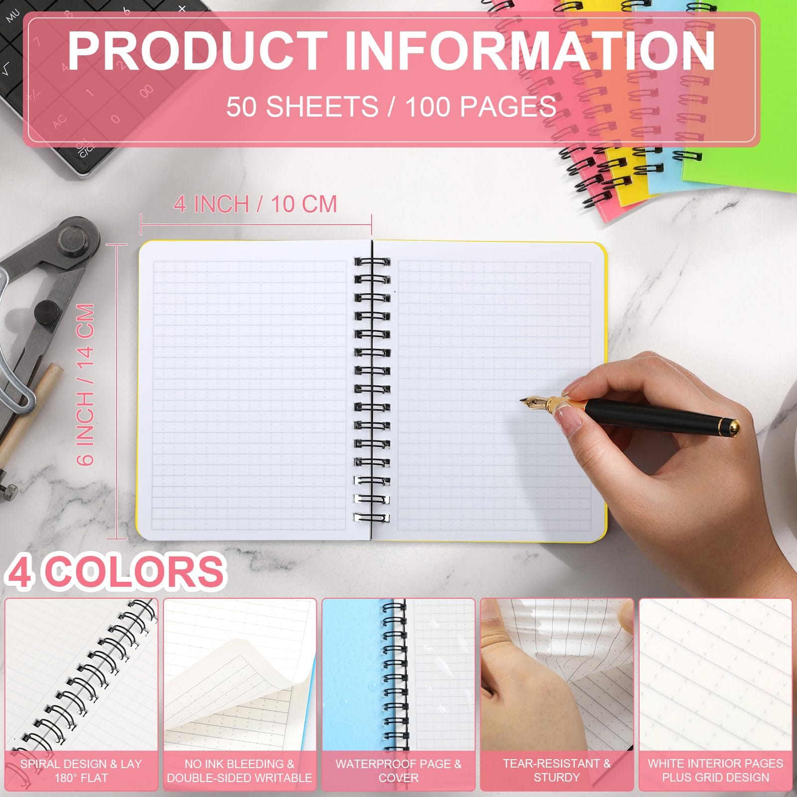 - Package Information: the package includes 4 packs of 10 x 14 cm/4 x 6 inches weatherproof notebook in blue, pink, green and yellow, suitable for any bag; The sufficient quantity will meet your daily needs, and you can also share them with your family and friends to use together; These memo pads are nice for note taking, ideal for work, study, or life