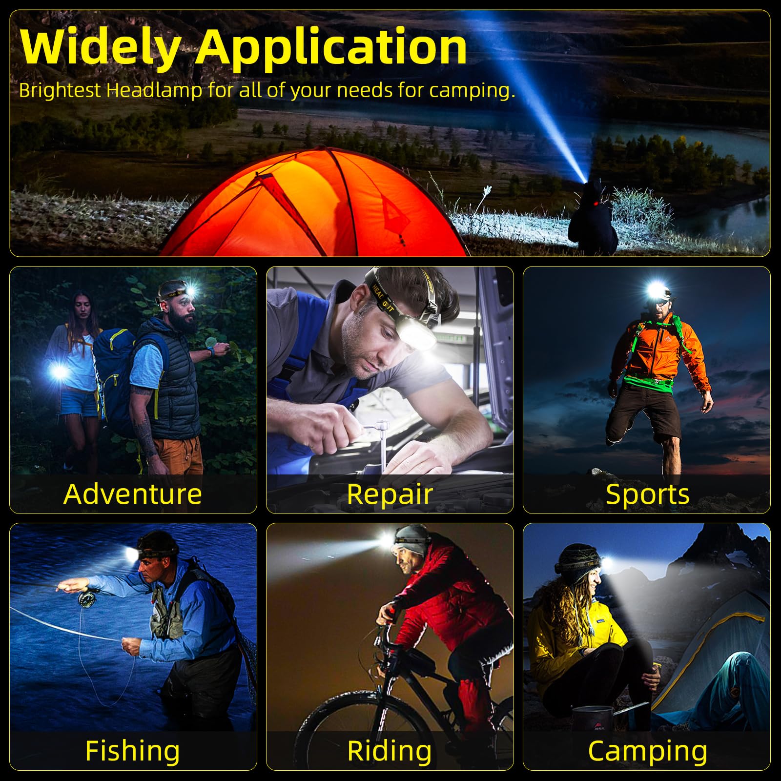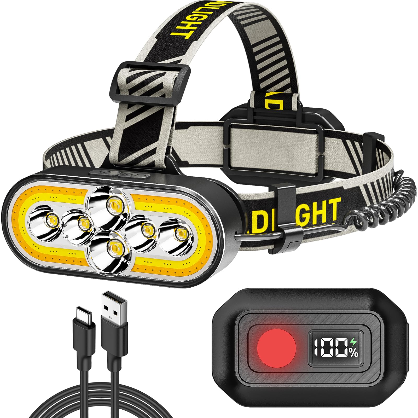 - 【Super Bright Headlamp】TD191 headlamp are equipped with advanced 6 LED chips and 3 cob light. Brightest headlamp delivers an impressive 1090 high lumens output, ensuring exceptional visibility in the darkest conditions, making it an essential headlight for outdoor adventures such as camping, cycling, and fishing.
