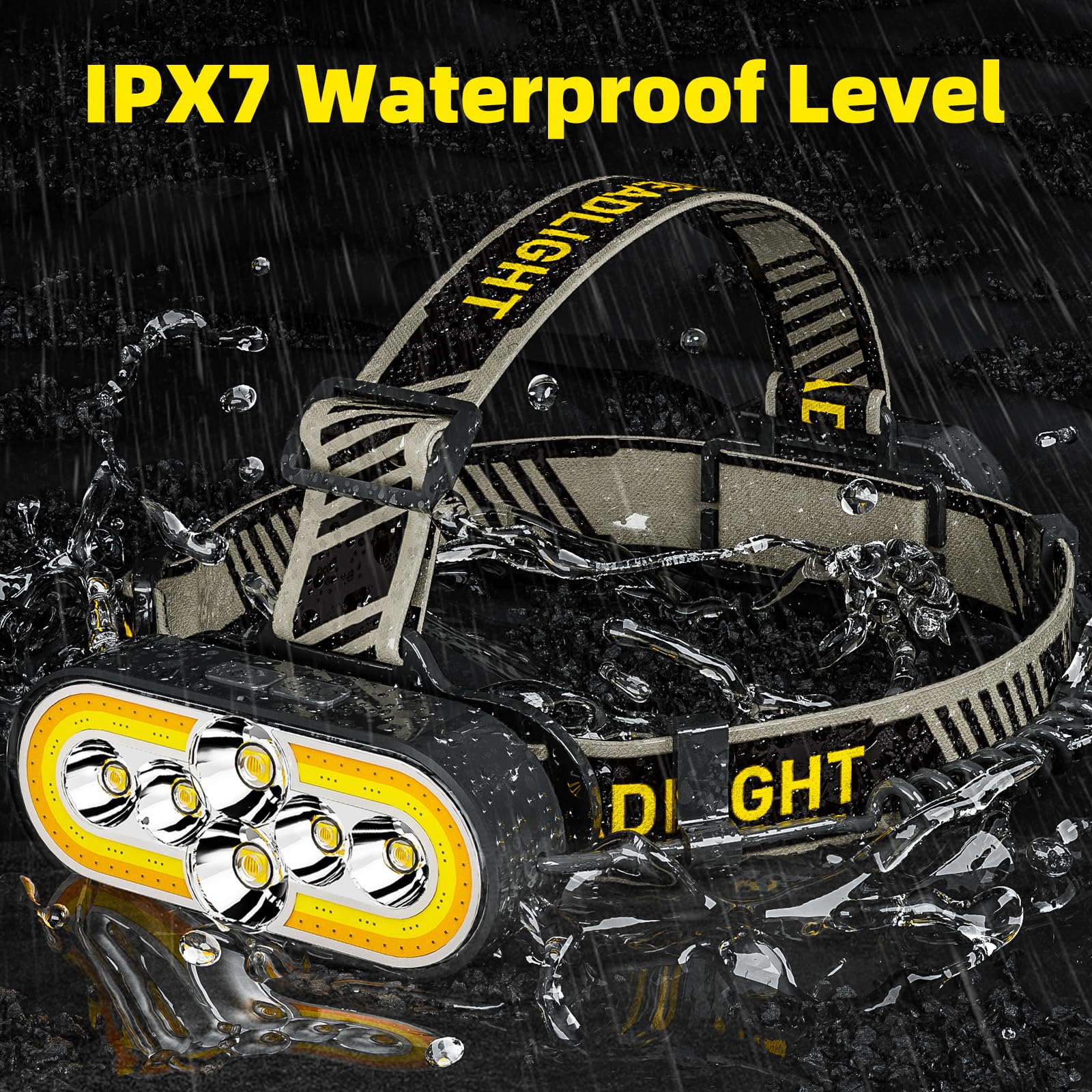 - 【Durable Waterproof Design】Engineered with an IPX7 waterproof level, powerful headlamp is built to withstand harsh weather conditions, allowing you to use it confidently in rain or snow. Headlamp is made of high quality ABS material, which makes the headlamp more durable, lightweight(only 0.38lb) and more suitable for long time wearing.