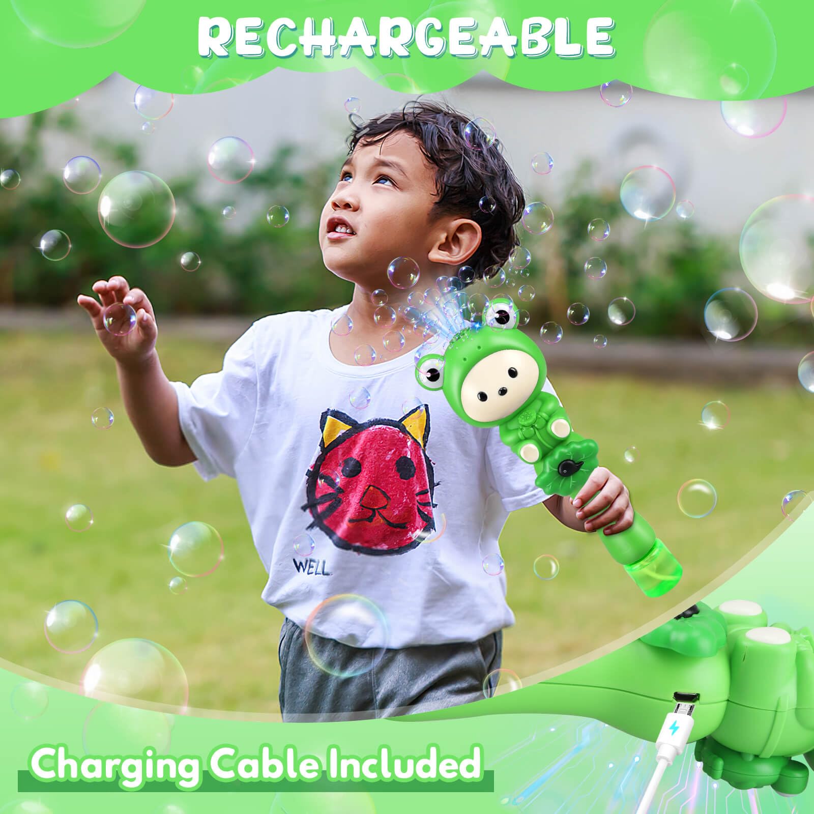 - REFILLABLE BUBBLE STICK Our bubble wand for kids has a built-in battery that provides uninterrupted fun without having to constantly replace batteries. The convenience of charging makes it an economical and environmentally friendly choice for endless bubble fun.
