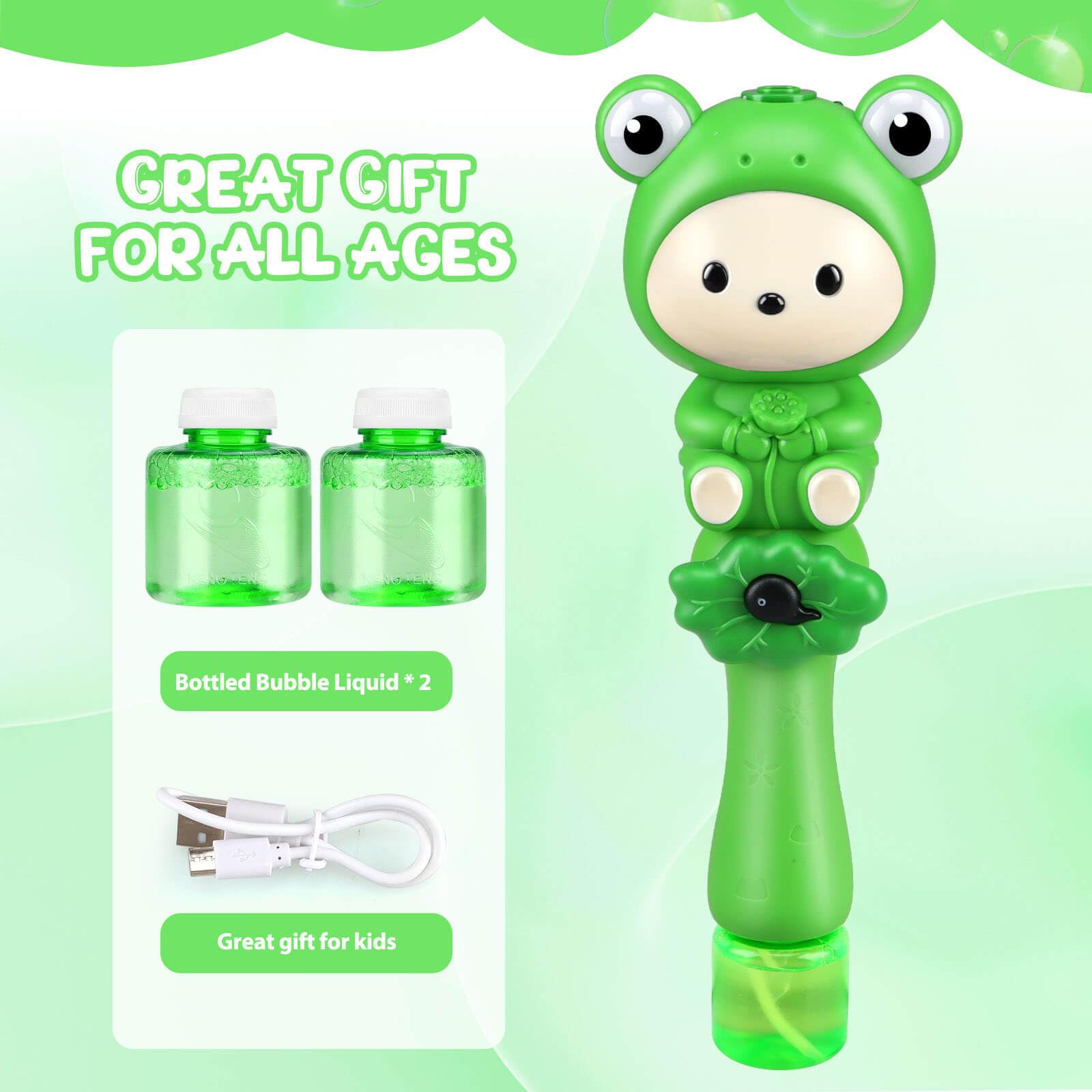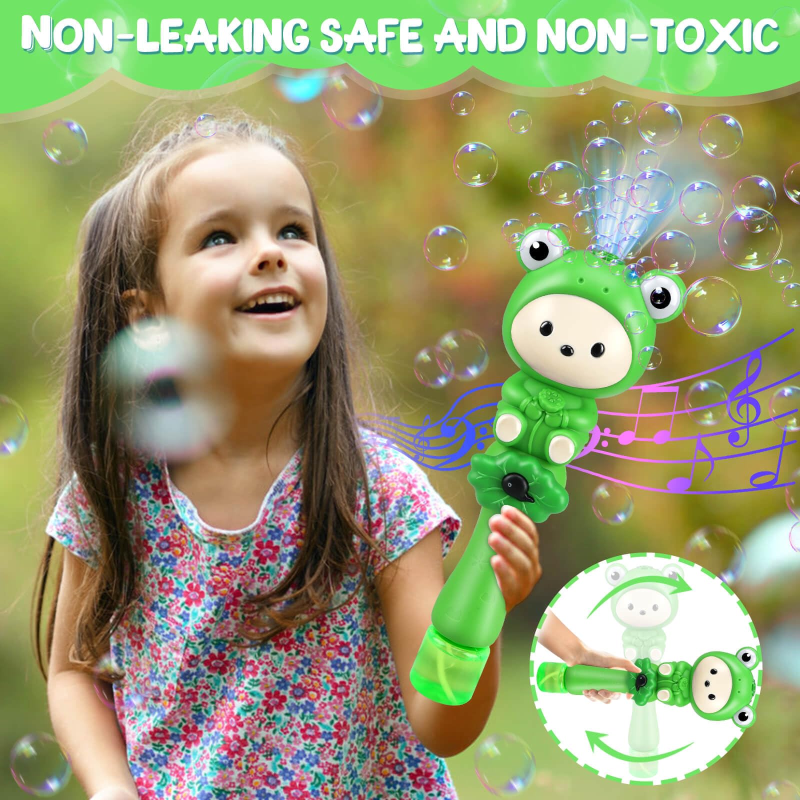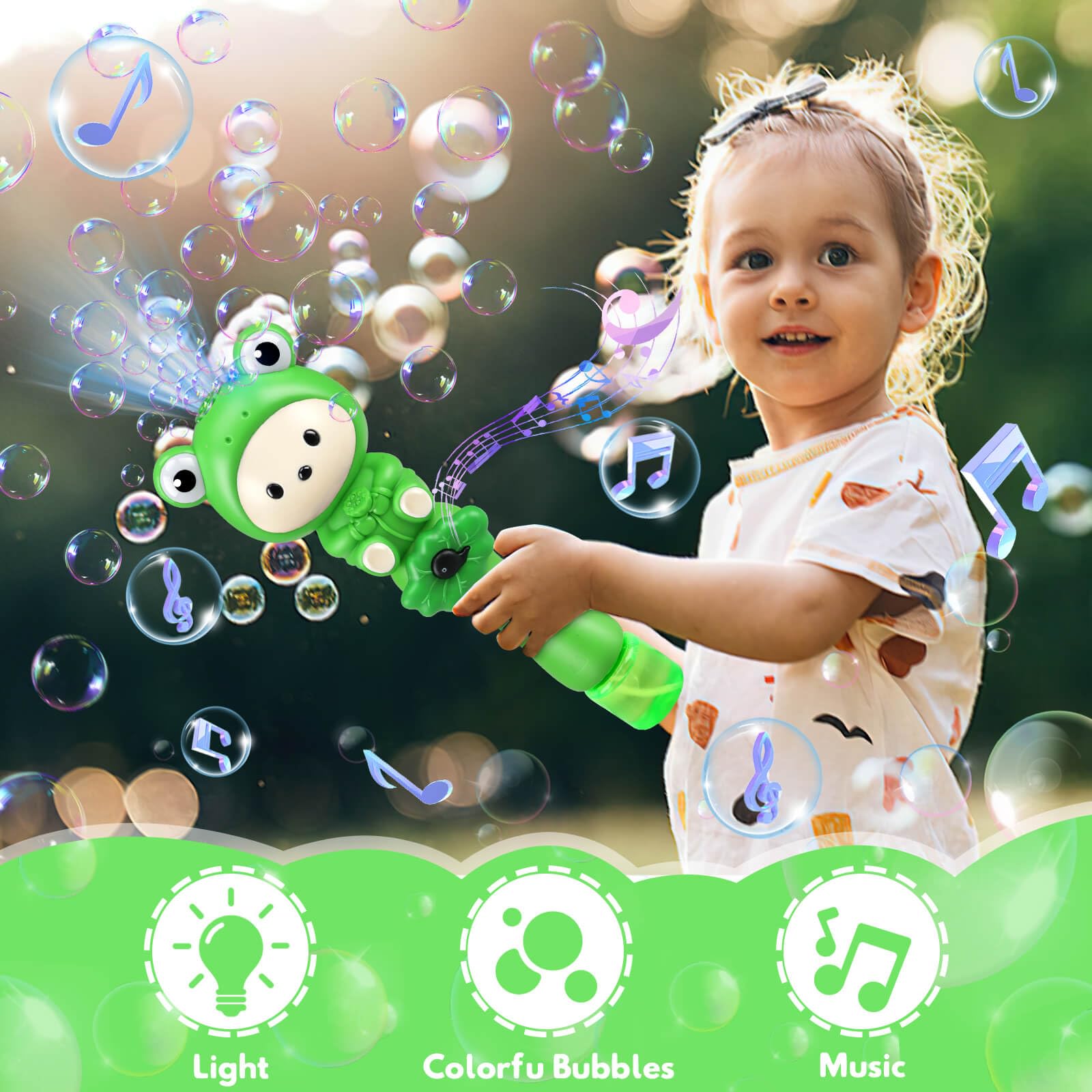 - LIGHT & MUSIC: This bubble machine for toddlers not only produces beautiful bubbles, but also features enchanting LED lights and cheerful music. Children will be fascinated by the colourful lights and entertained by the cheerful melodies that create a magical bubble experience.