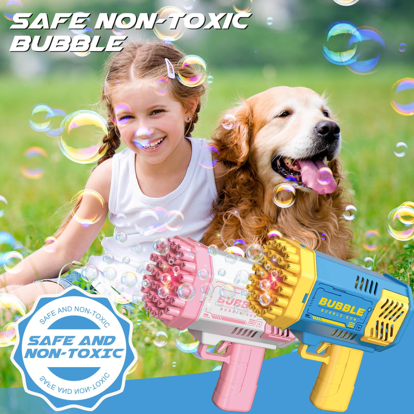 - Bubble gun 2 pack: Dolanus bubble machine 2 pack, a fun and exciting toy that will keep children entertained for hours. This 2 pack bubble guns is perfect for 3 year old boys and older, making it an ideal choice for birthday gifts or special occasions.