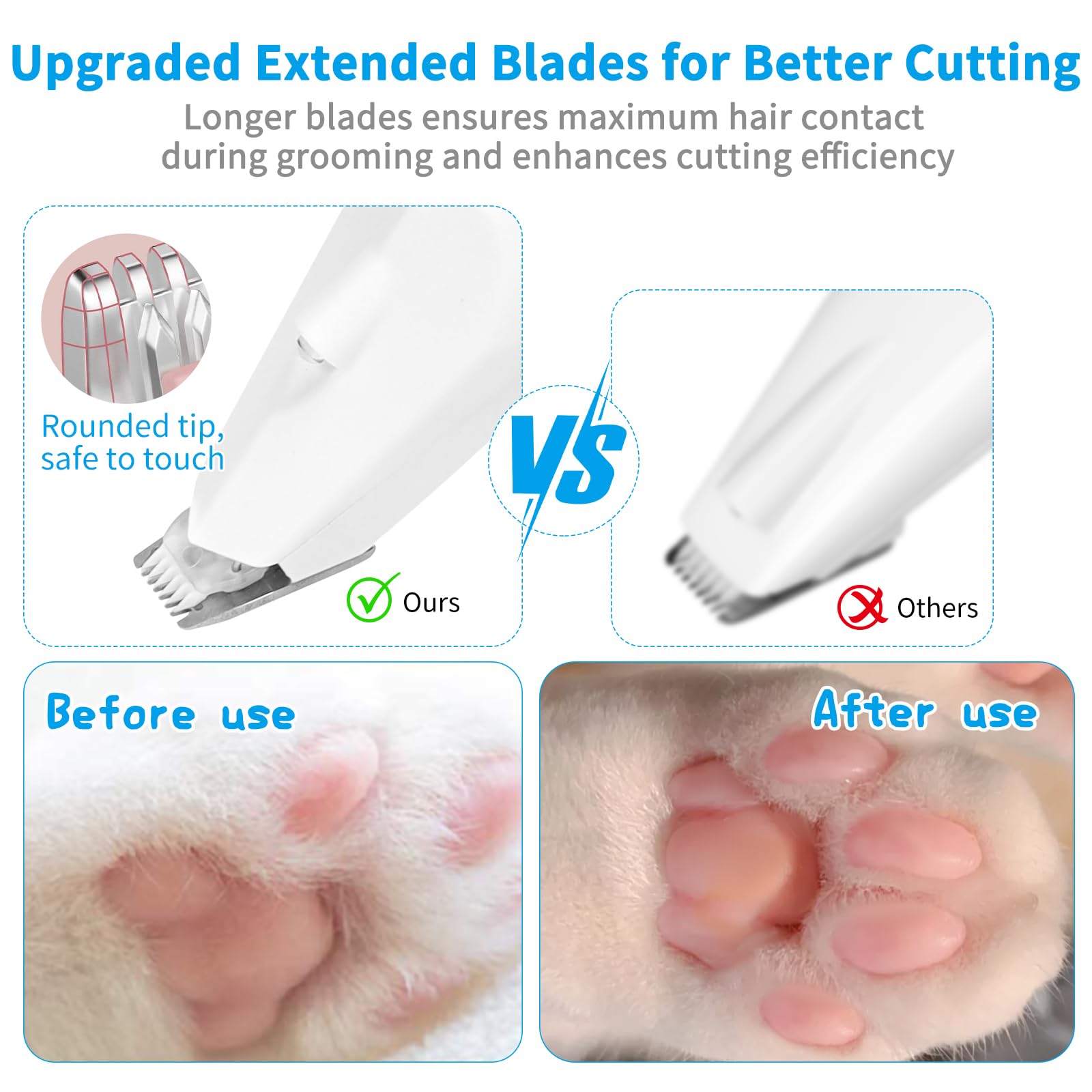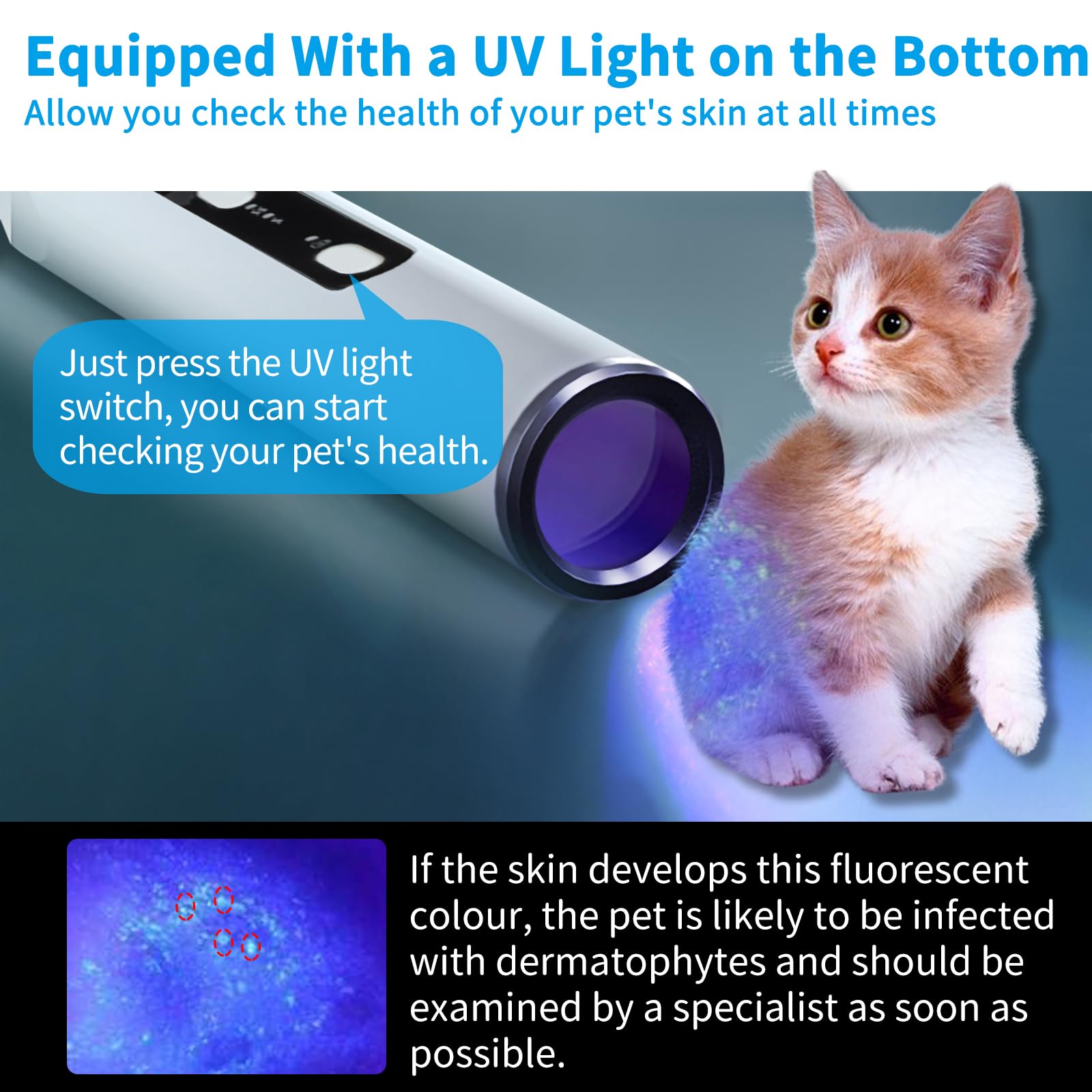 - UV LED dual lamp design: This paw trimmer for dogs has a built-in UV light for quick detection of skin problems. LED light for optimal lighting when trimming, especially in sensitive areas such as soles, ears or face - reducing the risk of injury and promoting your pet's skin care