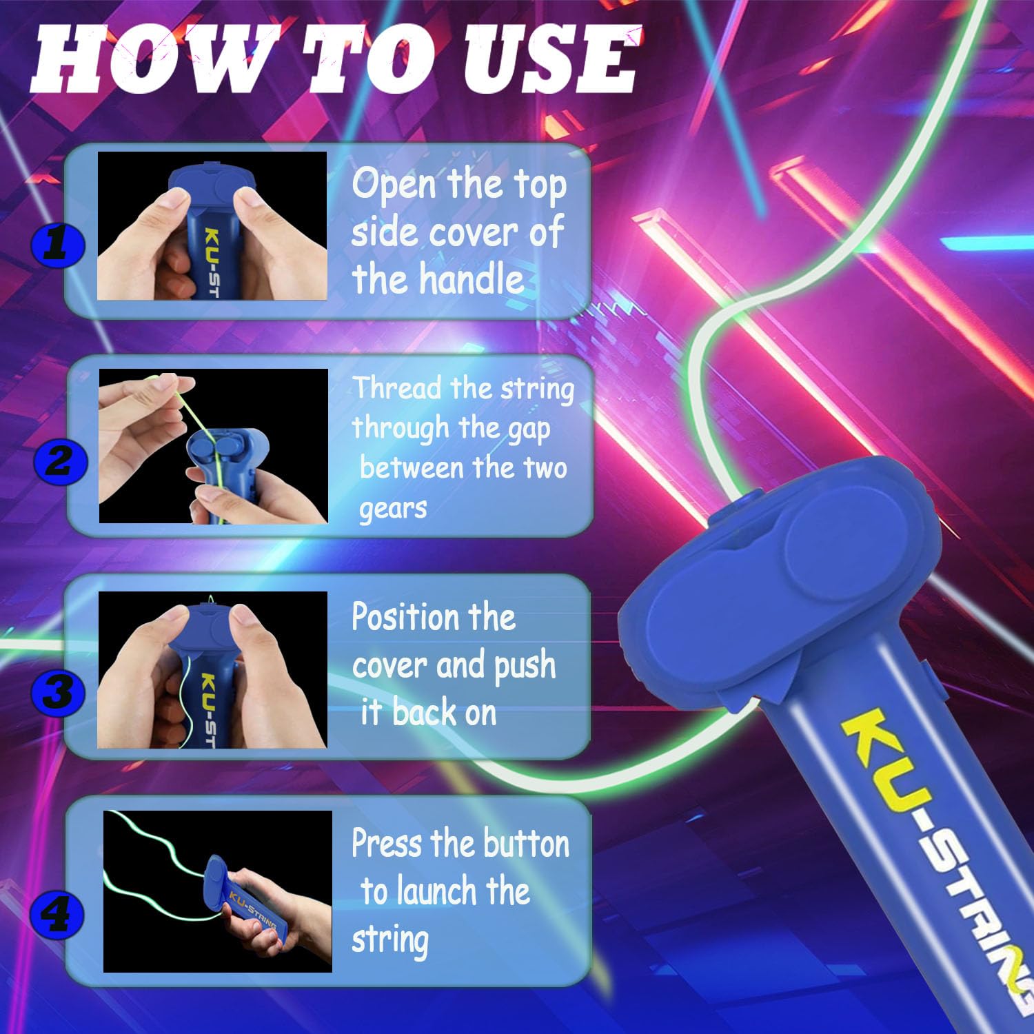 A Must-Have Gift for Everyone: More than just a fidget toy, KU-String rope thruster is a game-changer that appeals to all ages. Whether you're 8 or 80, everyone loves it! Kids are drawn to it, teens can’t get enough, and adults enjoy it too. A great gift for holidays, birthdays, concerts, parties, or any event that needs a touch of light and color—A rope lasso launcher toy brings joy to everyone.