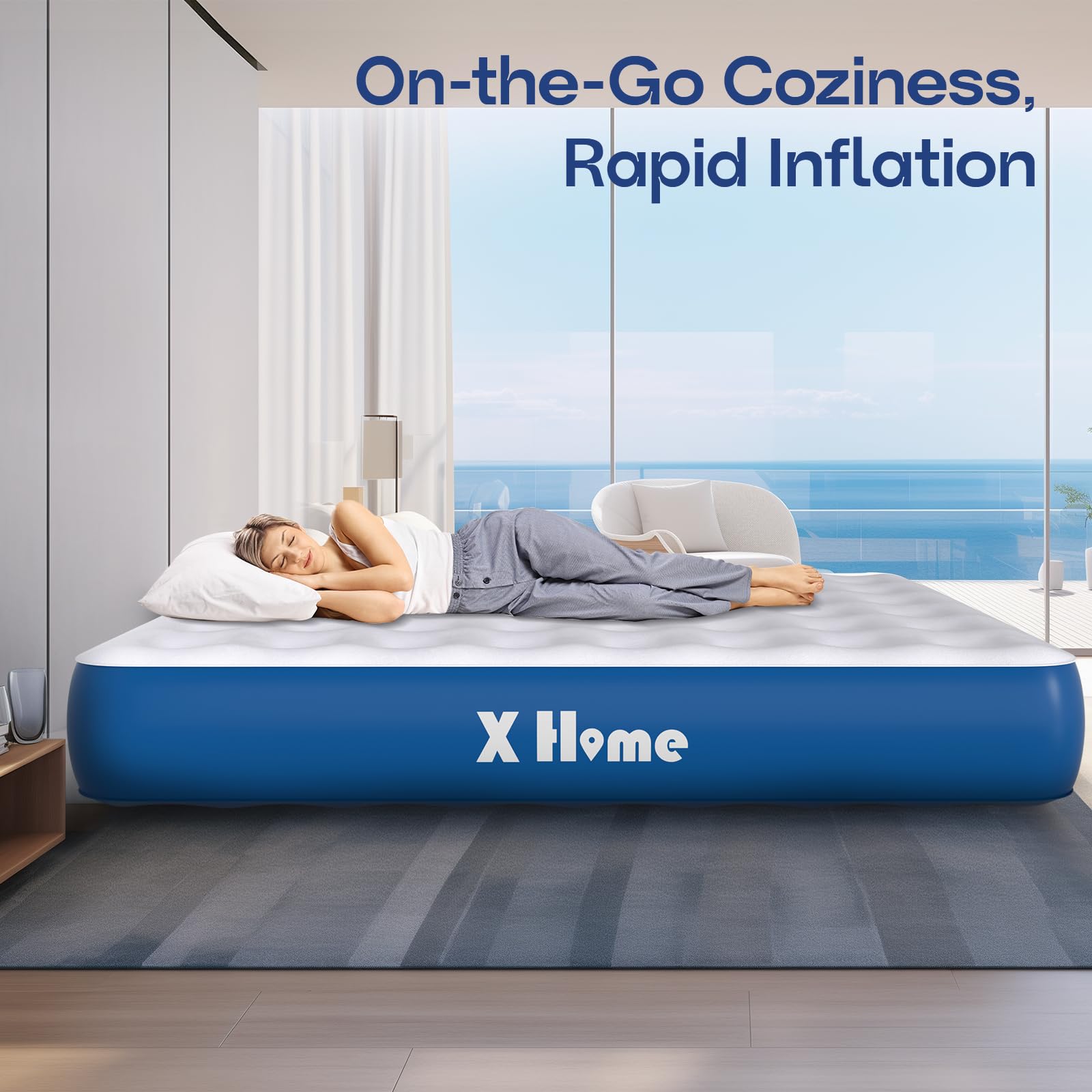 【Rapid Inflation】 Immerse yourself in instant comfort with a built-in pump system that swiftly inflates or deflates within 2 minutes. Simply plug in, turn the knob, and enjoy an effortless inflating experience.