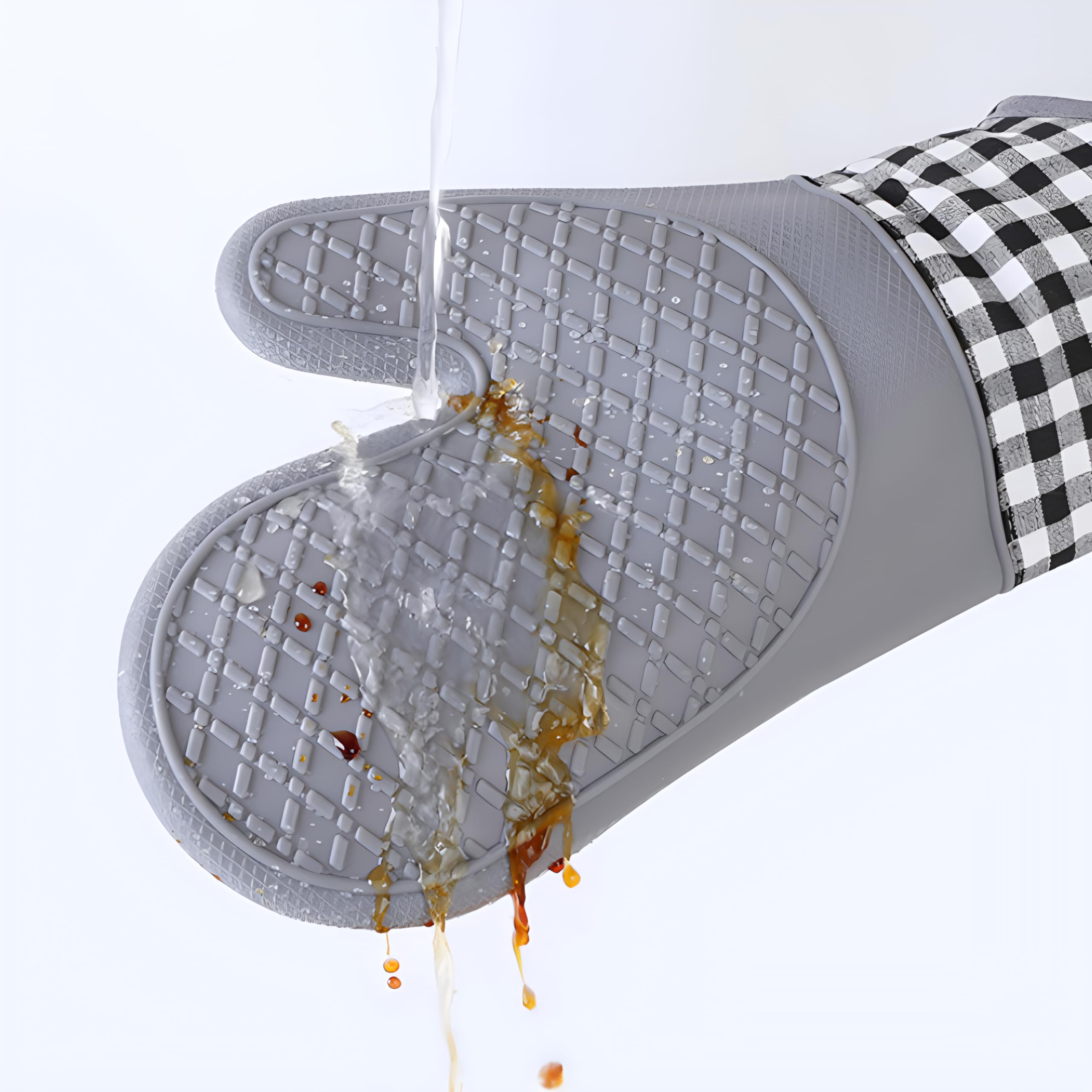 【Textured Non-Slip Grip & Waterproof】Oven Mitts and Pot Holders Sets provide an improved control and stability thanks to a non-skid, textured surface, allow you grip pots, pans and cookware safely without slips or spills. Our kitchen oven mitt set is featured with textured surface to improve friction and stability over hot objects. The silicone part is completely waterproof, which means steam or hot liquids won’t soak through and scald your skin. Moreover, you can take food out from hot water or cold fridge directly due to cold and heat resistance of microwave oven gloves.