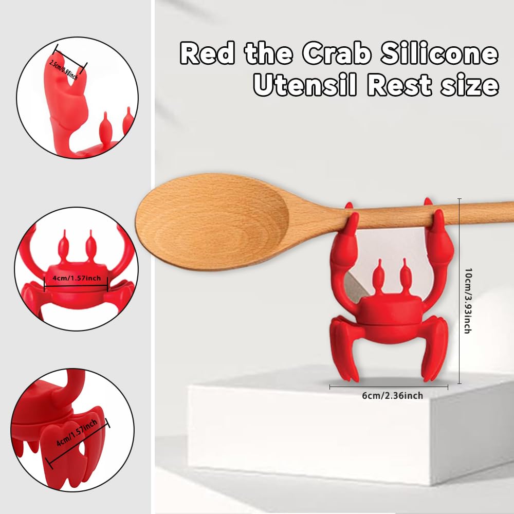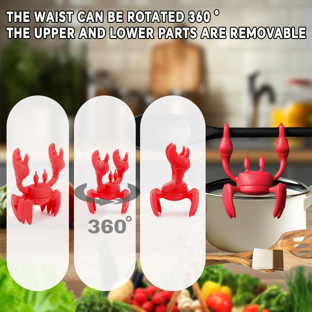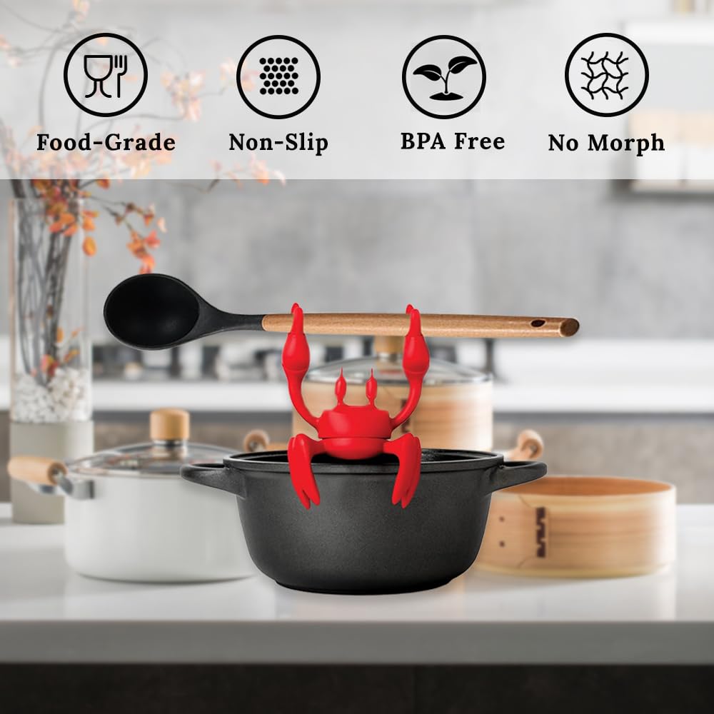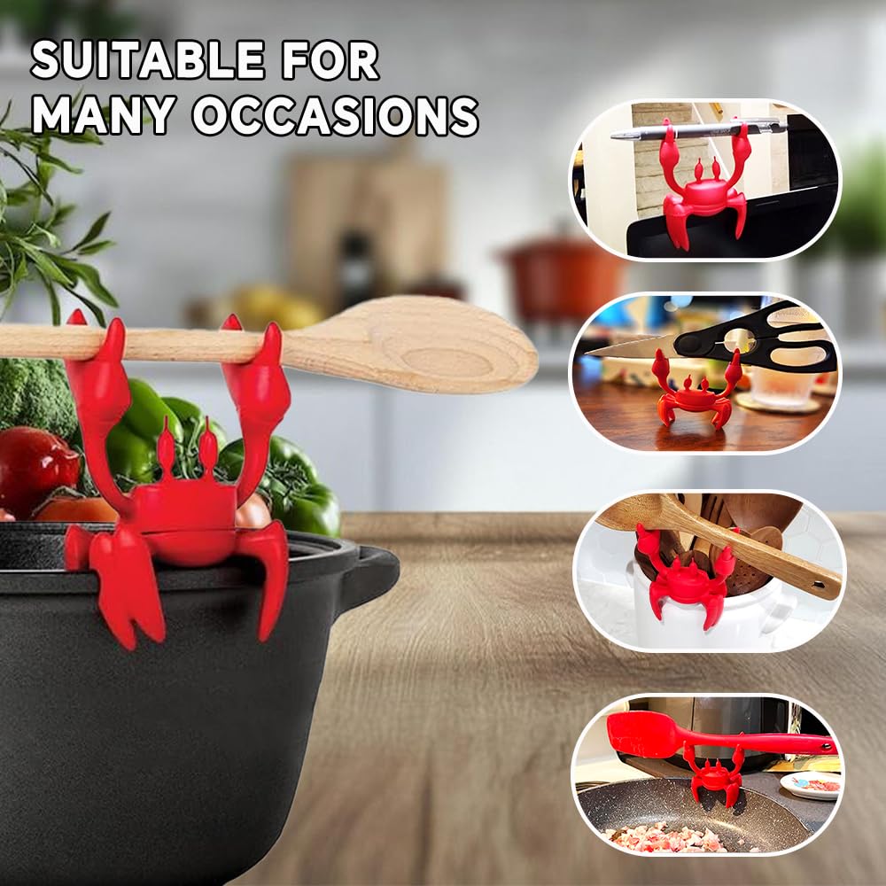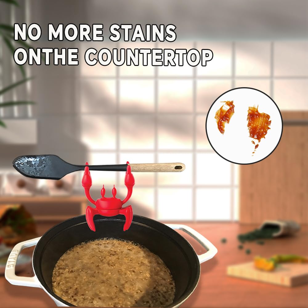 【Non-Slip & Multi-Use】The crab’s textured claws securely hold spoons, ladles, or even ravioli spoons (no more rolling utensils!), while its flat base acts as a stable silicone pot organizer for messy stovetops.