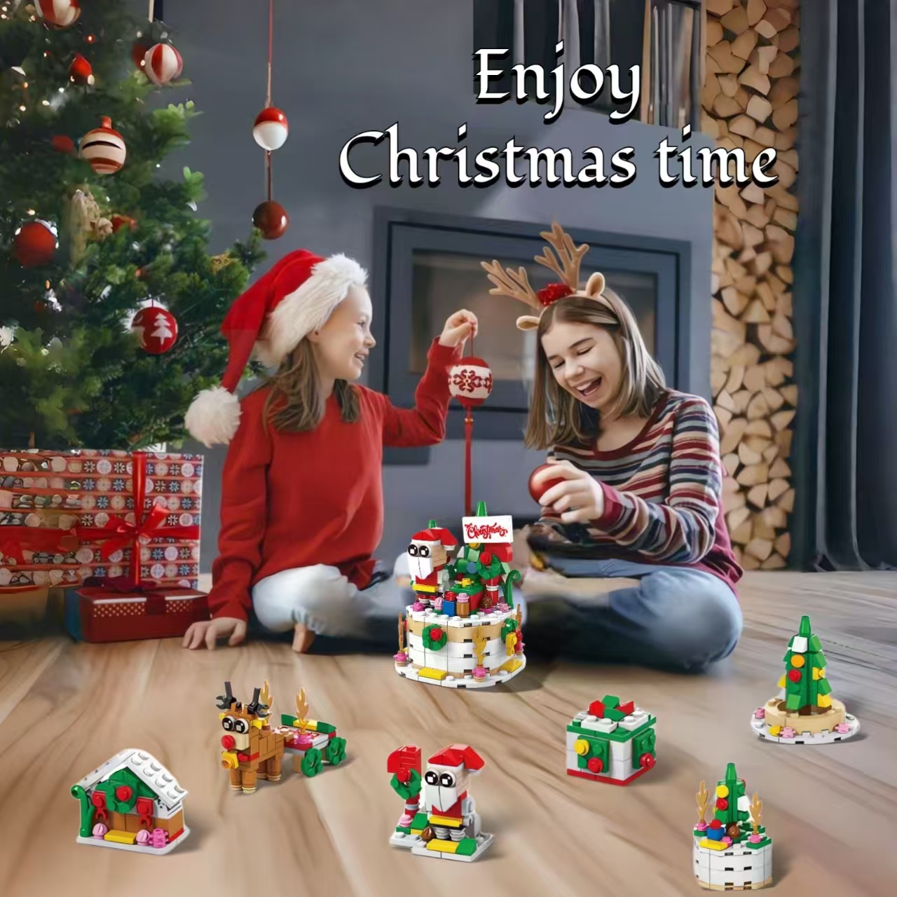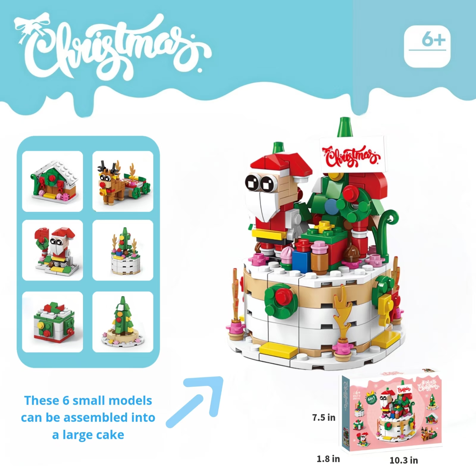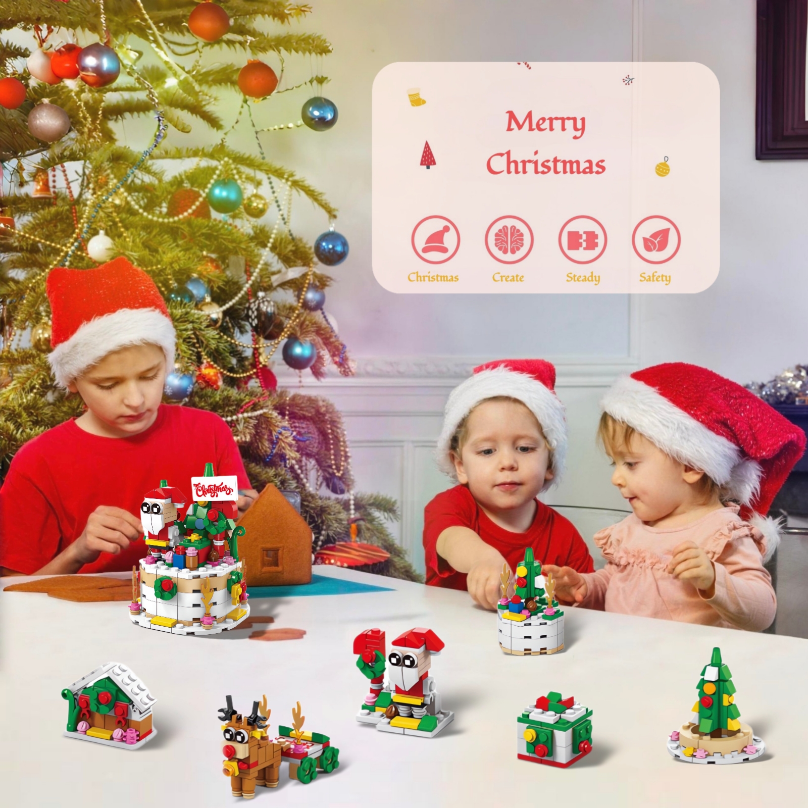 Creative Christmas Countdown Kits: Our lovely Christmas building set includes 6 models Christmas themed toys: Christmas tree, reindeer, gift box, santa claus, cake, gingerbread house. 6 mini models can be assembled into 1 big Christmas cake
