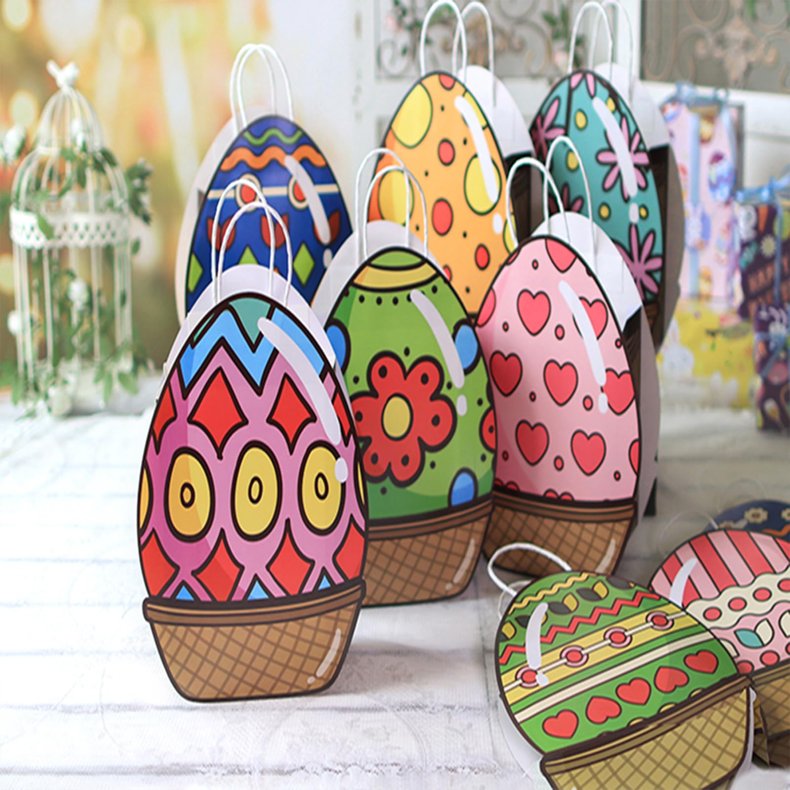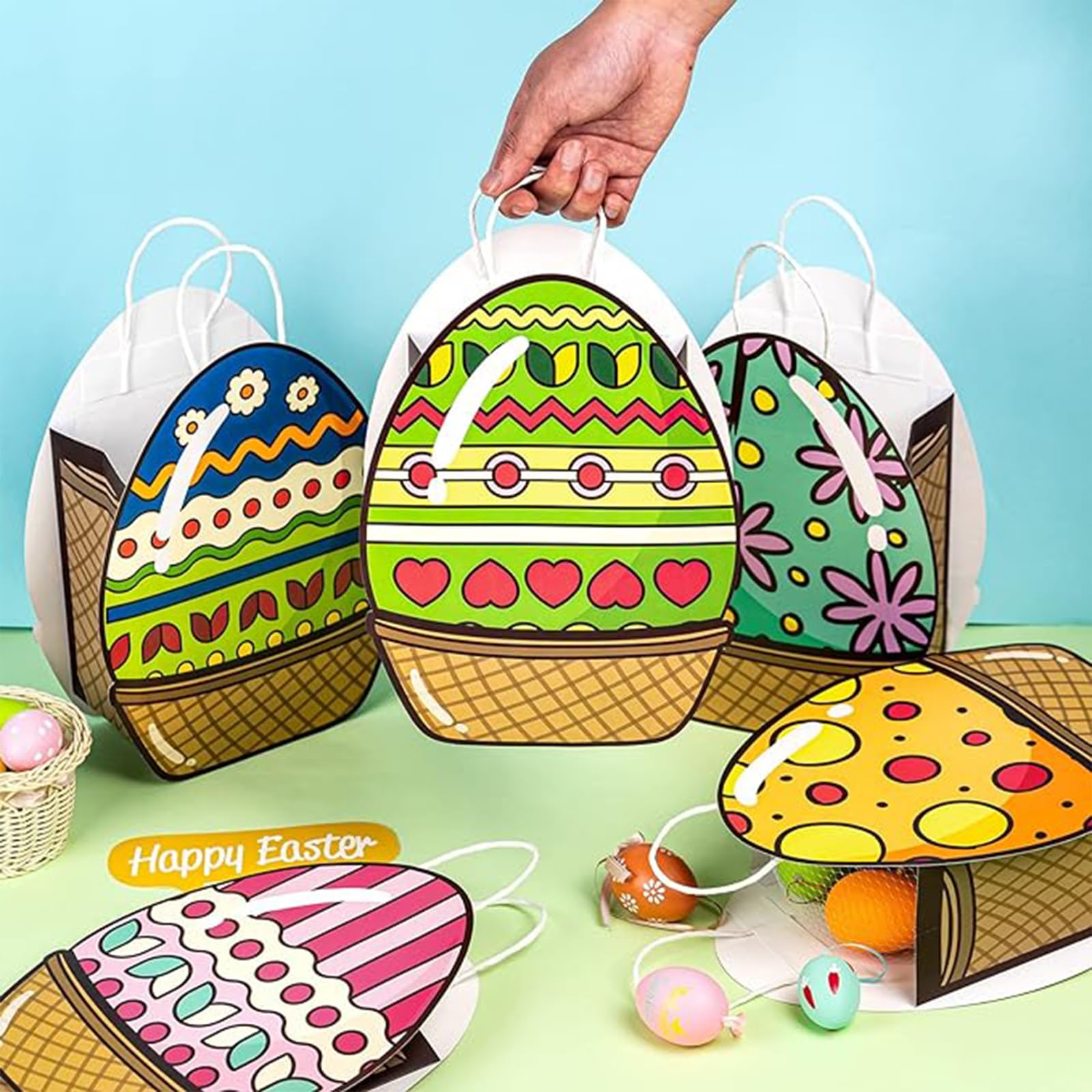 Easter Gift Bags: These easter bags with handles are made from high-quality paper., which can be carried around without worrying about colorful eggs/gifts falling. Eco-friendly, sturdy, durable, odorless reusable