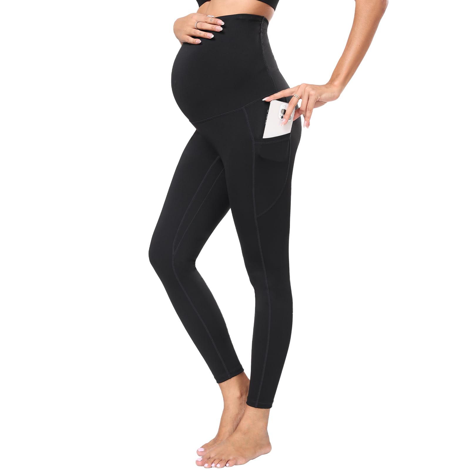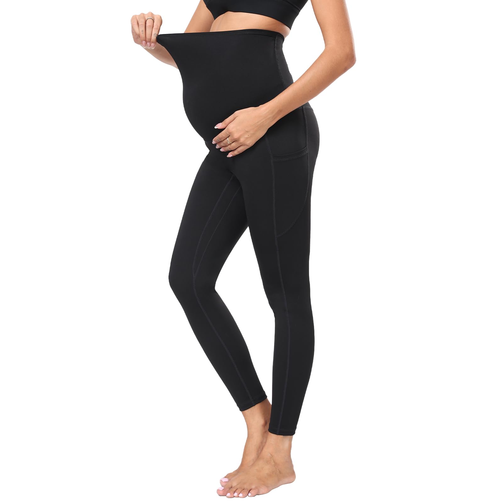 DURCHDACHTES DESIGN: Diese Umstandsleggings sind mit zwei Taschen auf beiden Seiten ausgestattet, in denen Sie wichtige Dinge wie Mobiltelefone, Karten usw. aufbewahren und so Ihren Trainingsaufwand reduzieren können.