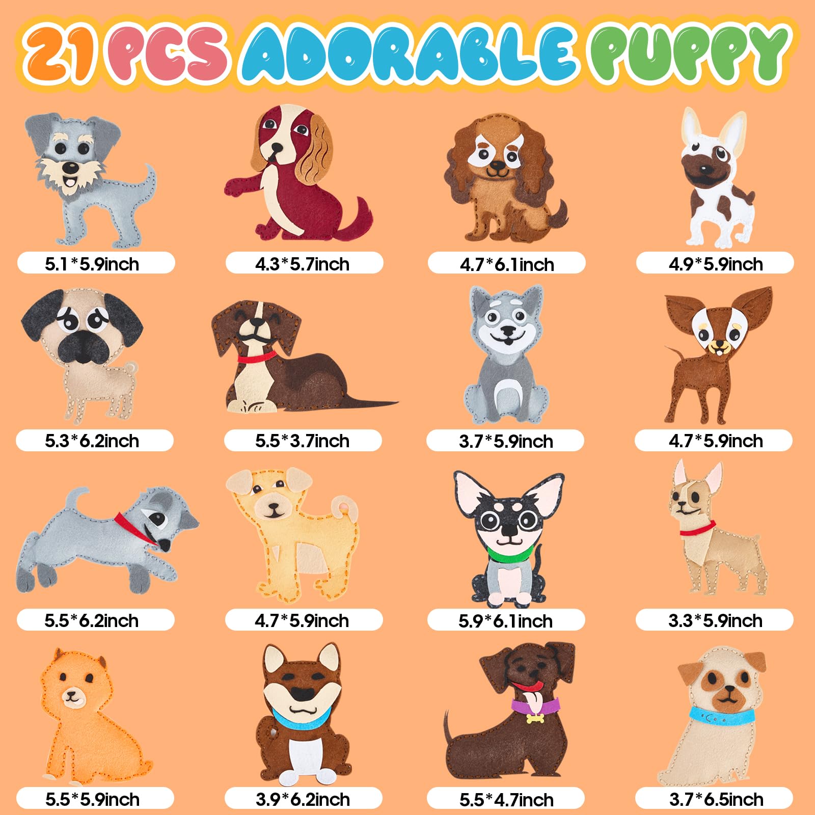 - Kids Sewing Kit: 21 Puppies projects kit contains everything you need to sew, cute dog shapes for Golden Retriever, Schnauzer, Corgi, Pit Bull, Dachshund, Poodle, Husky, Tusky, Bulldog, and more, perfect for children beginners to learn to sew