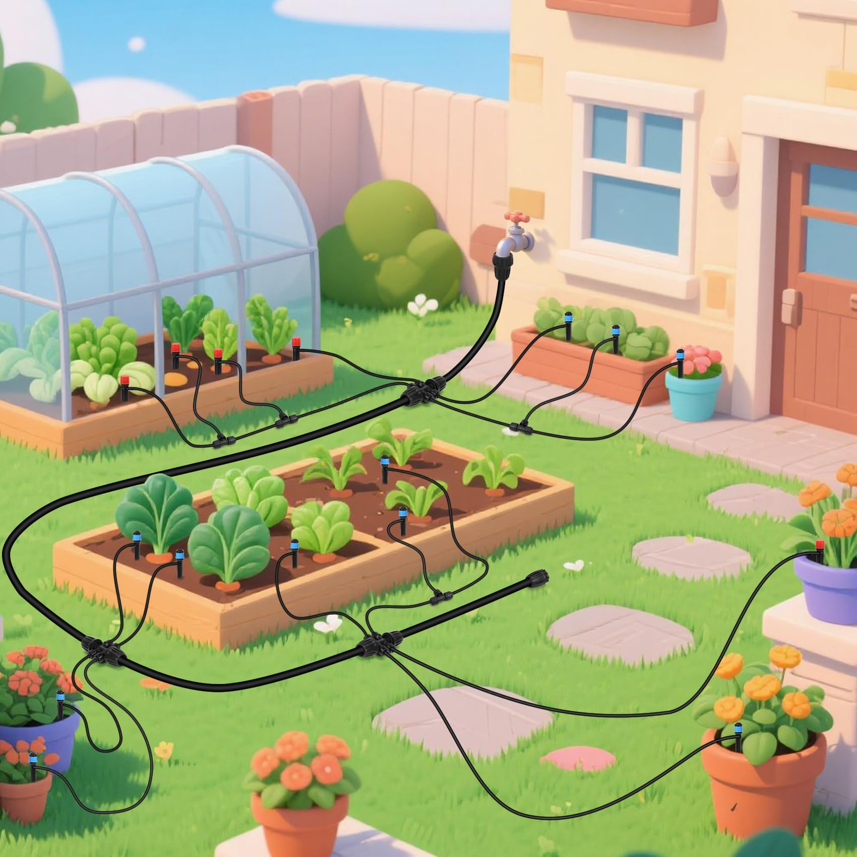 - Efficient & Water-Saving Design:Our drip irrigation system delivers water directly to plant roots, reducing evaporation and runoff, saving up to 80% water compared to traditional sprinklers.