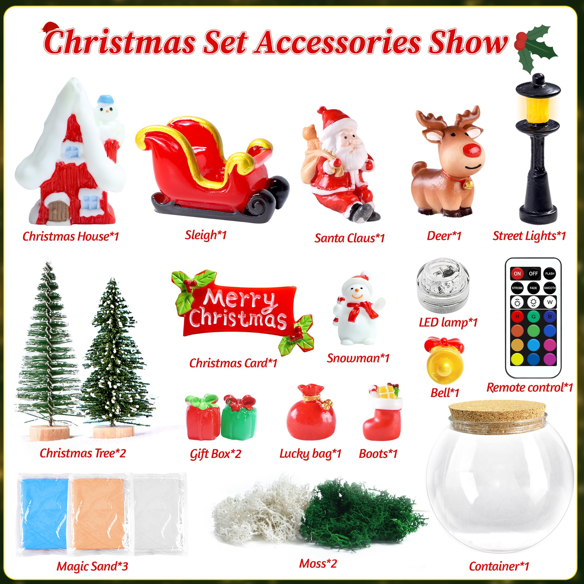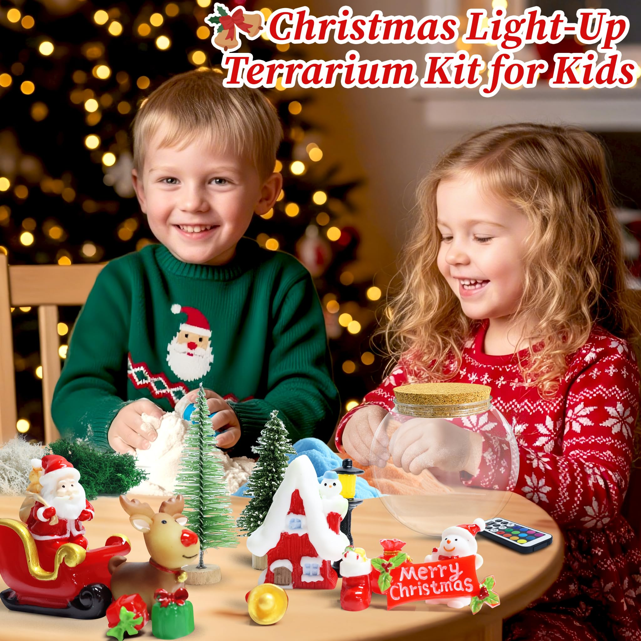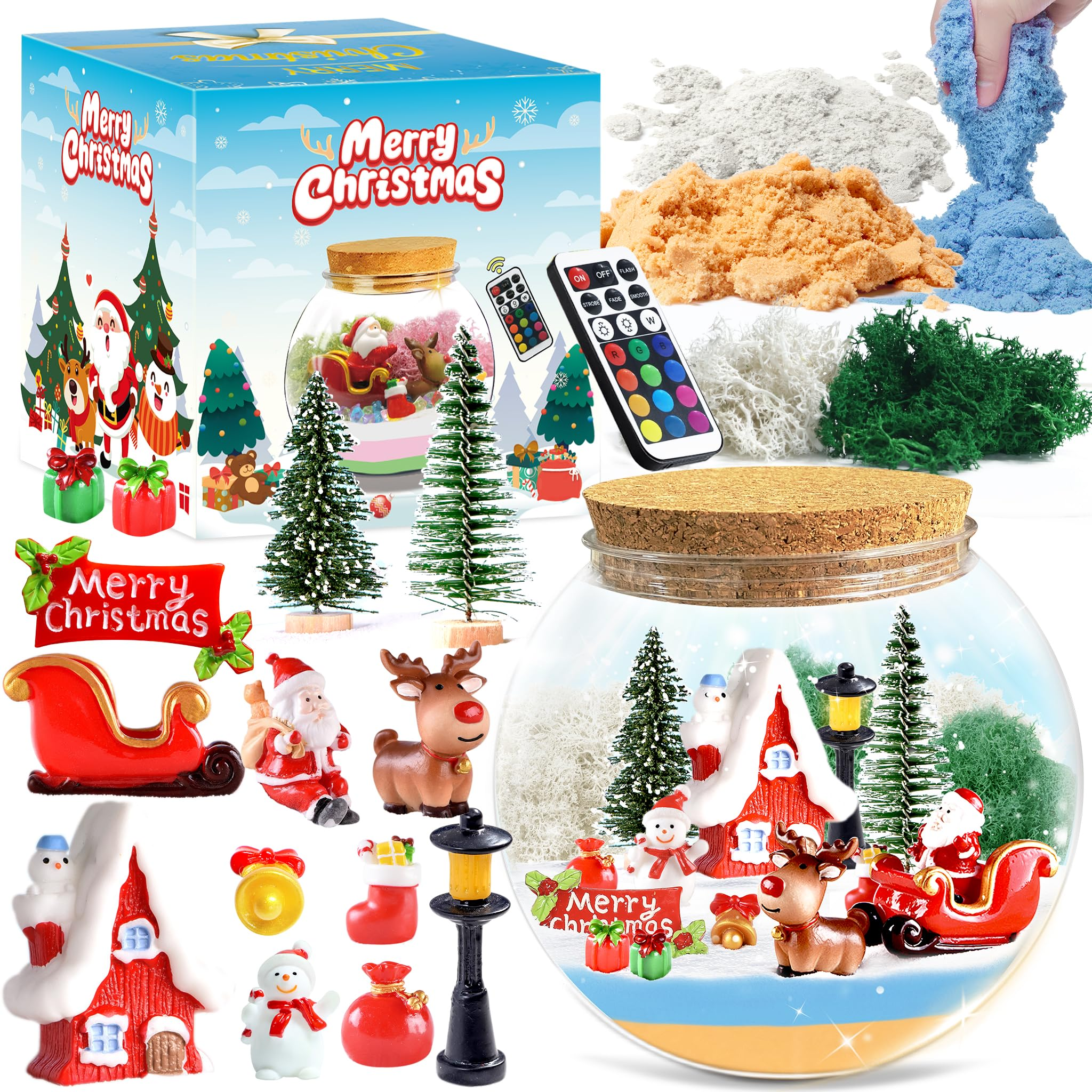 DIY Christmas Terrarium Kit: Our Christmas toys contains everything needed to build a magical Christmas garden, kids can create their own Christmas garden with Santa, elk, snowman, house, LED lights, sleigh and more