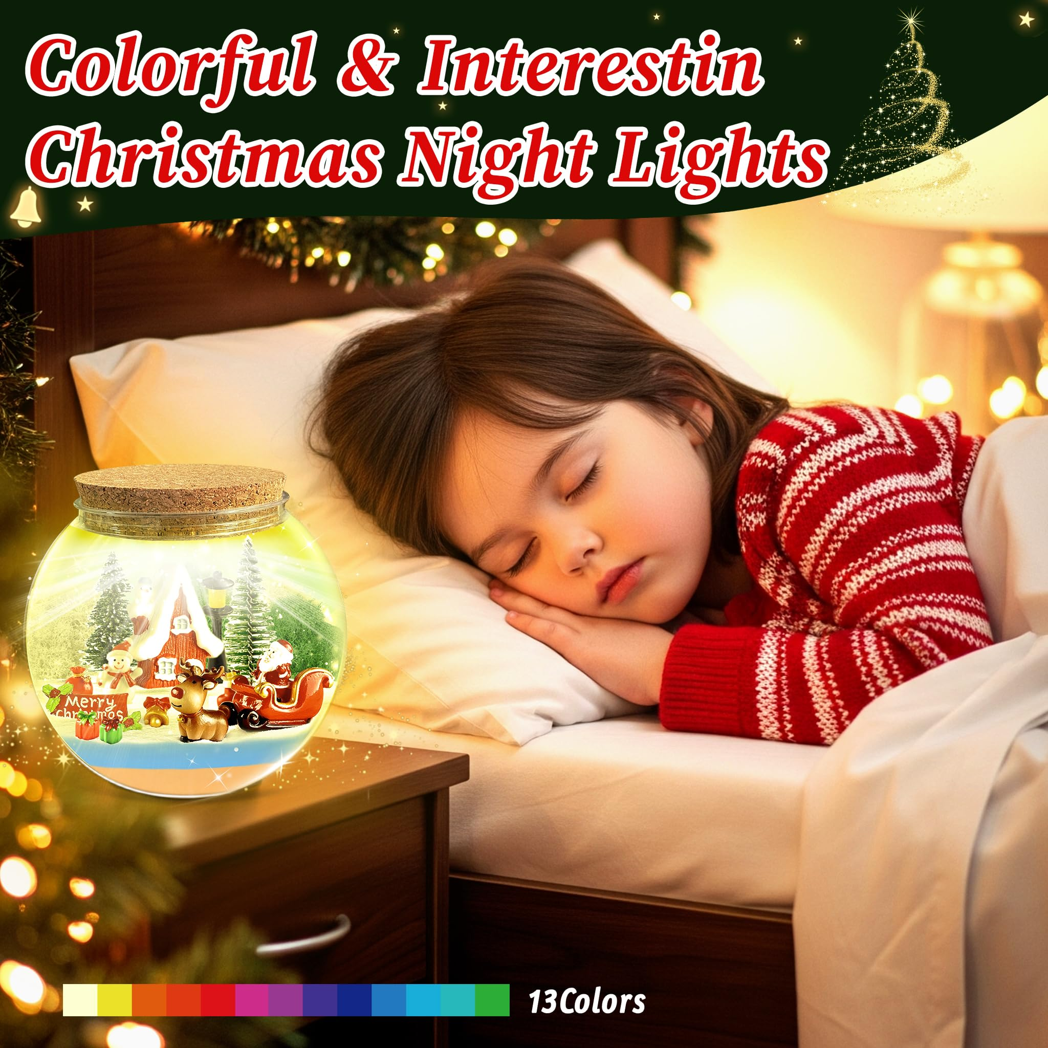 Dynamic LED Lights with Remote Control:13 colors and 4 flashing modes of LED lights can be switched at the touch of|a remote control to dress up every corner of the room for the Christmas season