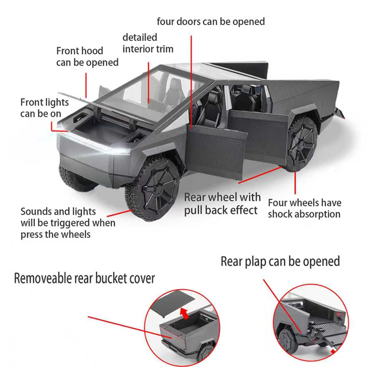 美国🇺🇸FBA包邮,1/32合金皮卡车模型(带声光、回力),库存: 50,一次性全清,价格: 3.3美金