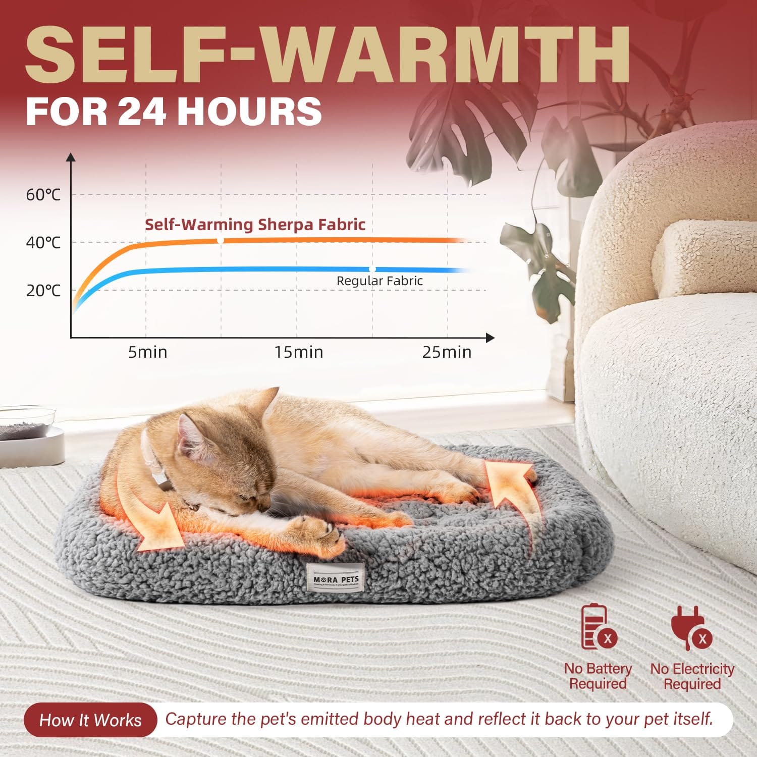 - ๐๐๐๐๐๐๐๐ ๐๐๐๐๐๐๏ผOur self heating cat bed is crafted from a special material that reflects your petโs body heat, it consistent coziness for your furry friendsโno electricity required